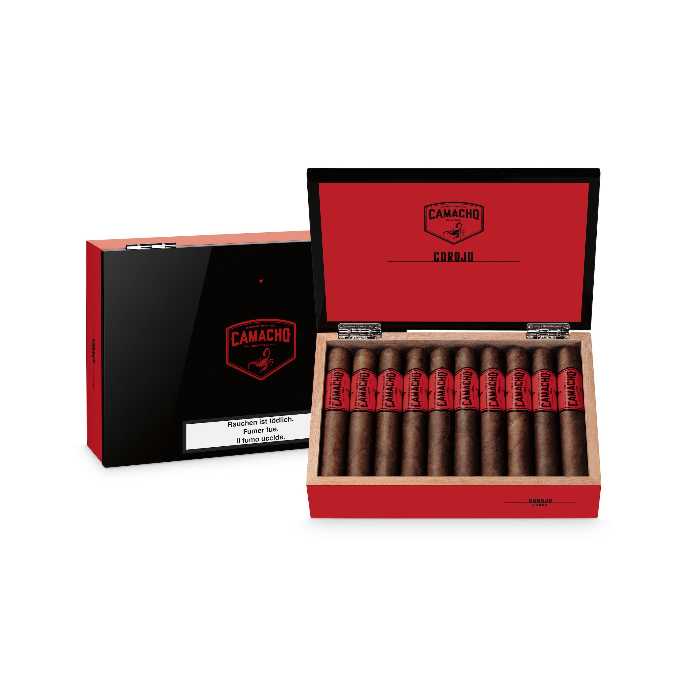 The Camacho Corojo Gordo is a gran robusto cigar that offers a bold, full-bodied smoking experience. Wrapped in cellophane, it ensures that each cigar retains its robust and spicy flavor. Expertly crafted and wrapped in protective cellophane, the Camacho Corojo Gordo Cello cigar guarantees a bold and vibrant smoking experience. The perfect way to enjoy a full-bodied and spicy flavor every time. The Camacho Corojo Gordo Cello cigar is expertly crafted and wrapped in protective cellophane, ensuring a bold, robust, and flavorful smoking experience every time.