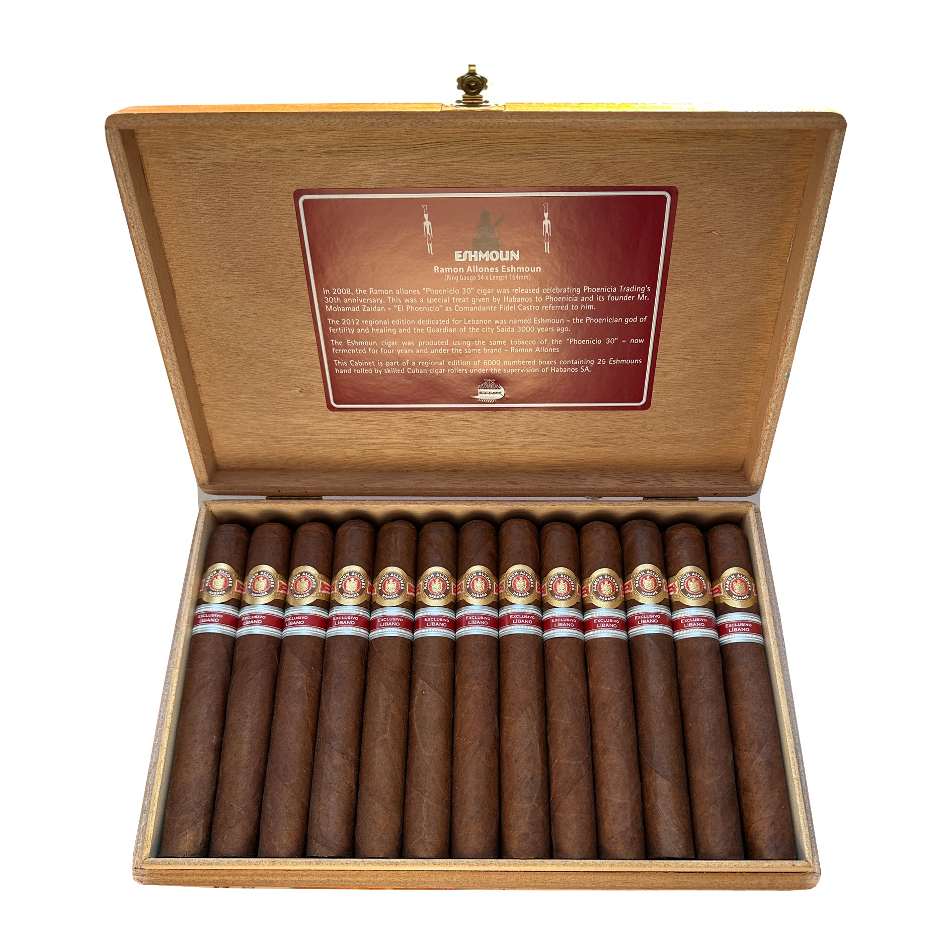 The Ramon Allones Eshmoun Cuban cigar is a Regional Edition produced for the Lebanese market in 2012, now considered incredibly rare. This cigar was the second time the mighty Sublimes vitola - 6 ½ inches by 54 ring gauge, offering up to 90 minutes of smoking - was offered by Ramon Allones in Lebanon.