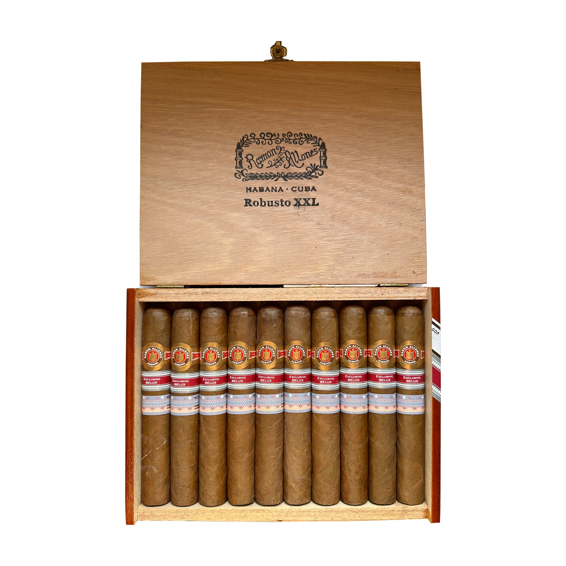 The Ramon Allones Robusto XXL Cuban cigar is a Regional Edition produced for the Belgian and Luxembourg markets in 2015. It measures 5 ⅞ inches by 54 ring gauge - an imposing vitola known as the Geniales - and will provide at least 70 minutes of full-bodied smoke.